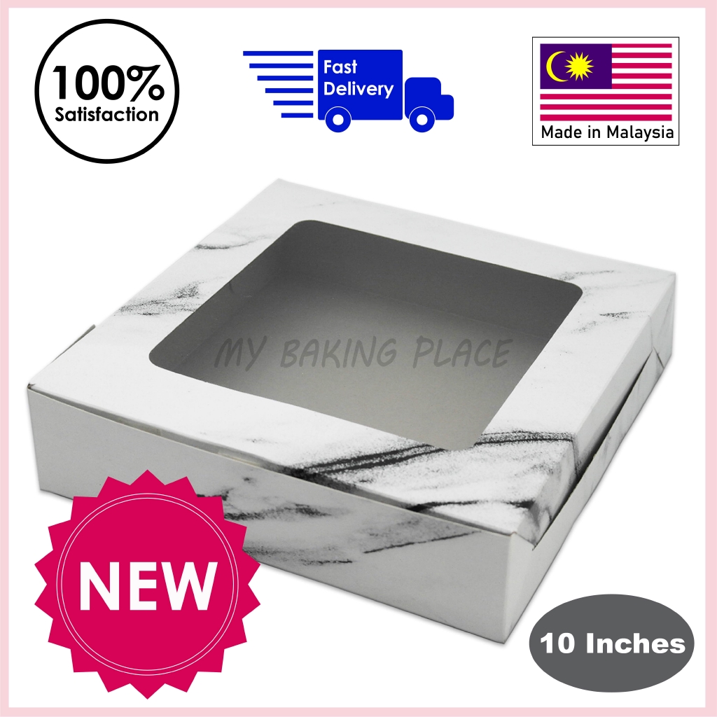 Cake Box Window ( Marble ) 10"x10"x2.5", Folding Box With via shopee.com.my